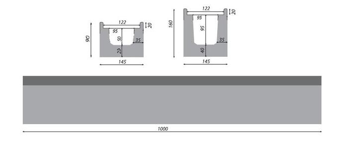 Odwodnienia liniowe betonowe wykonane są z tradycyjnego betonu klasy C35/45 o wysokich parametrach wytrzymałościowych. W zależności od typu kanału posiadają wzmacniane ocynkowane krawędzie zabezpieczające wzdłuż pokrywy.